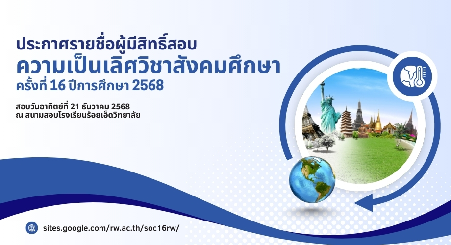 ประกาศรายชื่อผู้มีสิทธิ์สอบความเป็นเลิศทางสังคมศึกษาฯ ครั้งที่ 16 ประจำปีการศึกษา 2568
